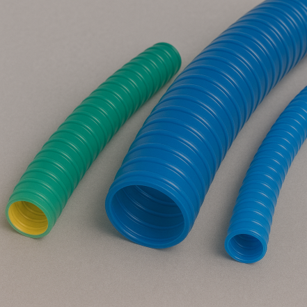 Çift katlı PVC yapıya sahip olup, polyester iplik takviyesiyle güçlendirilmiş sert PVC sarmal içerir. Bu tasarım hortuma yüksek mukavemet, maksimum esneklik ve kırılmaya karşı dayanıklılık kazandırır. Emme ve basınç uygulamaları için özel olarak geliştirilmiş yeni nesil bir tasarıma sahiptir.